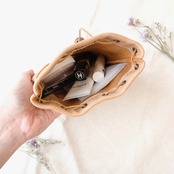 巾着を閉じるとき、初めは硬いですが、革が馴染んでいくと