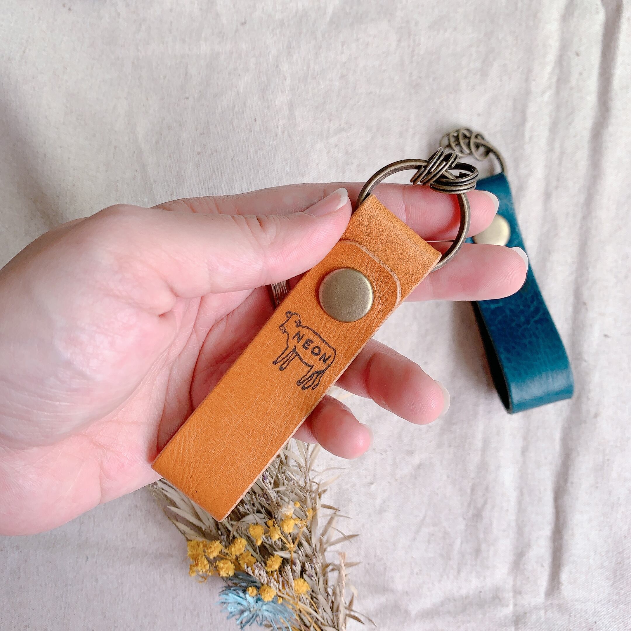バッカス(牛革)を使用したバネホックのキーホルダー